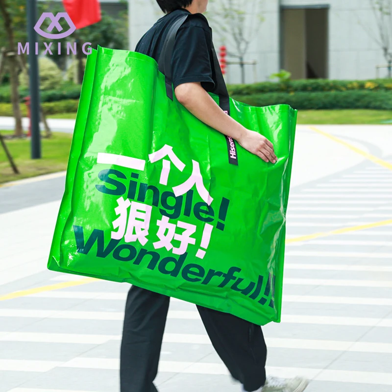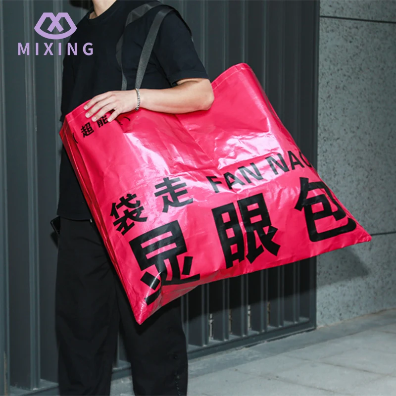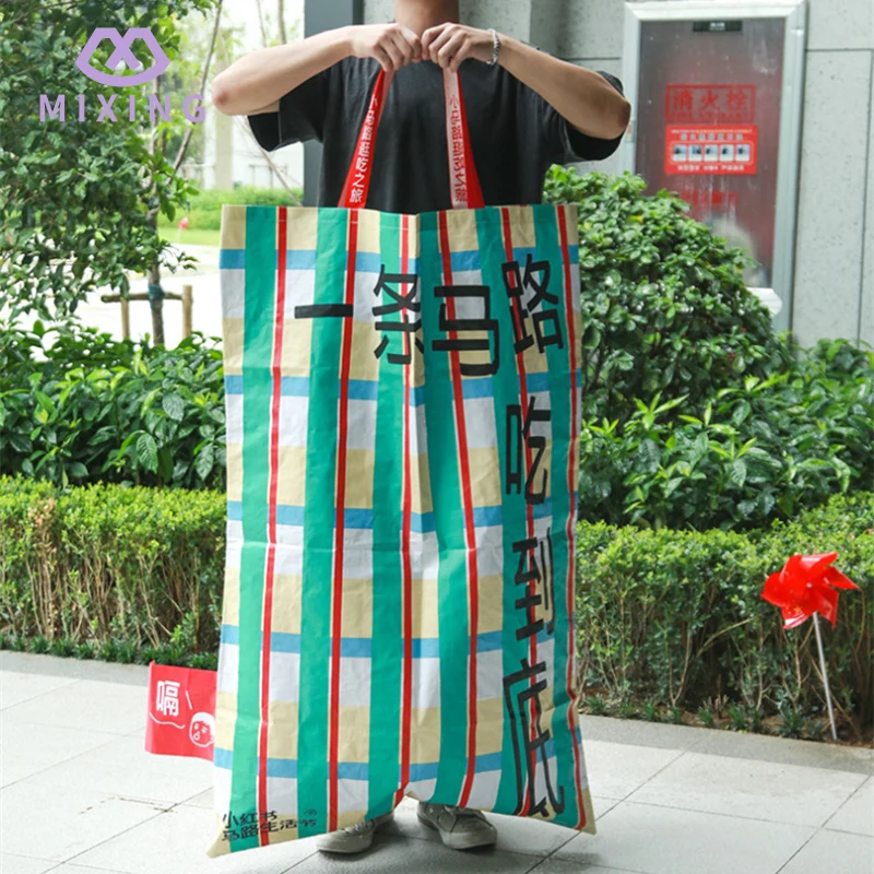 Welcome to buy Mixing’s customized Giant PP Woven Bag. Whether you need to sort out your bedding, clothes and POTS and pans when moving house, or stock up snacks and daily necessities when shopping at the supermarket, or go camping outdoors on weekends with folding tables and chairs, tents and meals, the PP woven bag produced by Mixing can all be packed in one go. There's no need to pack it into several bags and move it back and forth as usual.