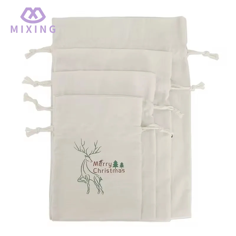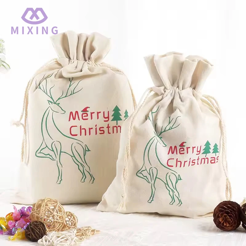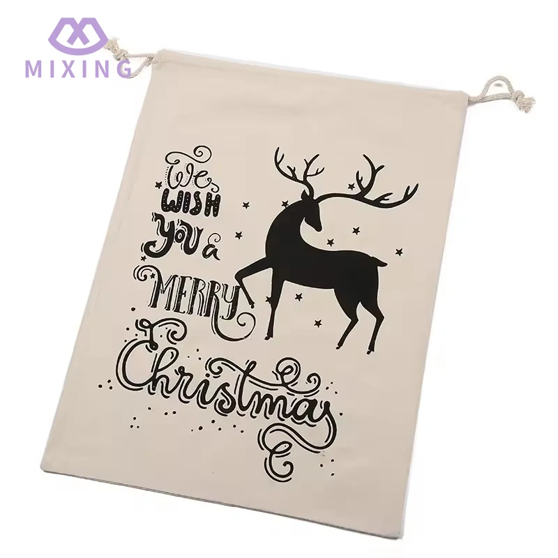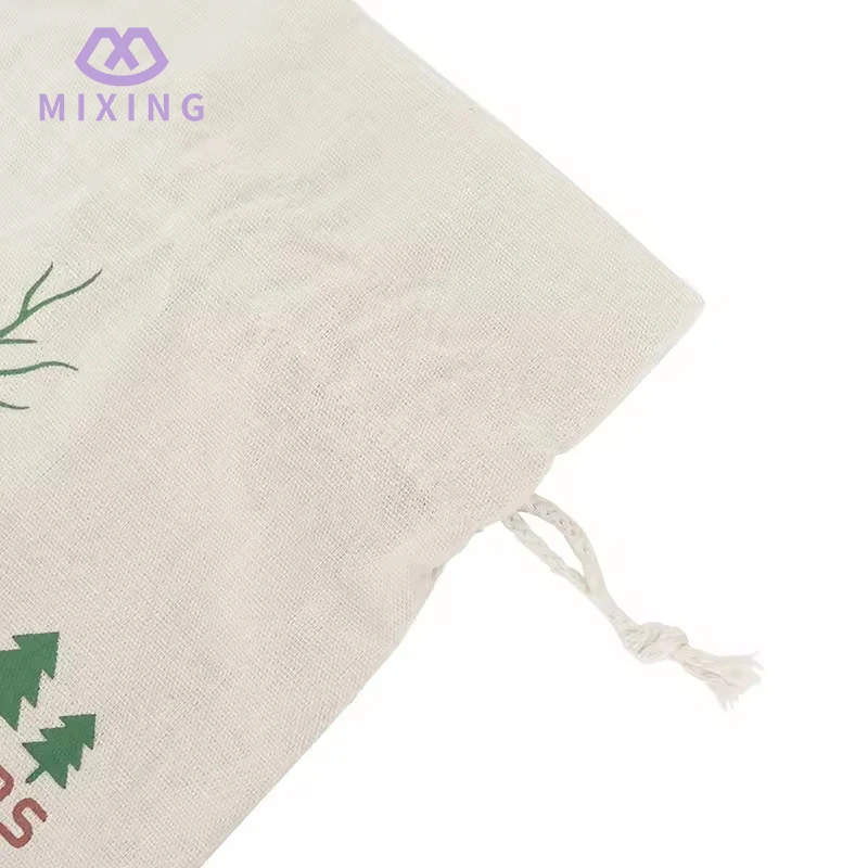 The fabric of the quality Large Cotton Christmas Drawstring Pouch made by Mixing has undergone pre-shrinkage treatment. When touched, you can feel the thick texture and fine texture characteristic of cotton fabric. It is not prone to deformation like thin cotton fabric, nor is it stiff due to the hardness of the material. It can naturally maintain a regular shape after loading items. The bag body is printed with rich Christmas-themed patterns, which are bright in color and blend well with the fabric, avoiding the cheap feeling of the patterns floating on the surface