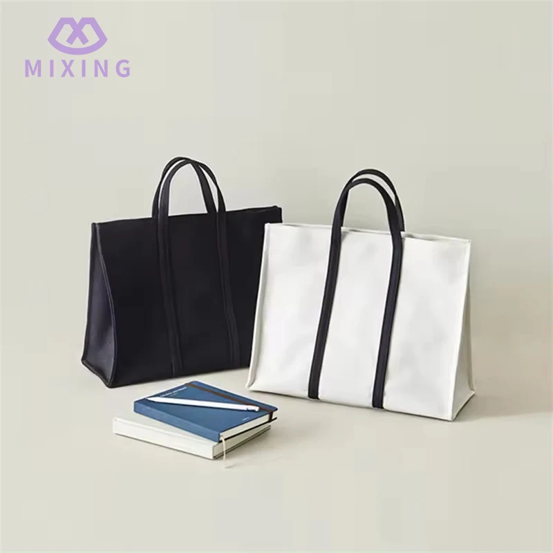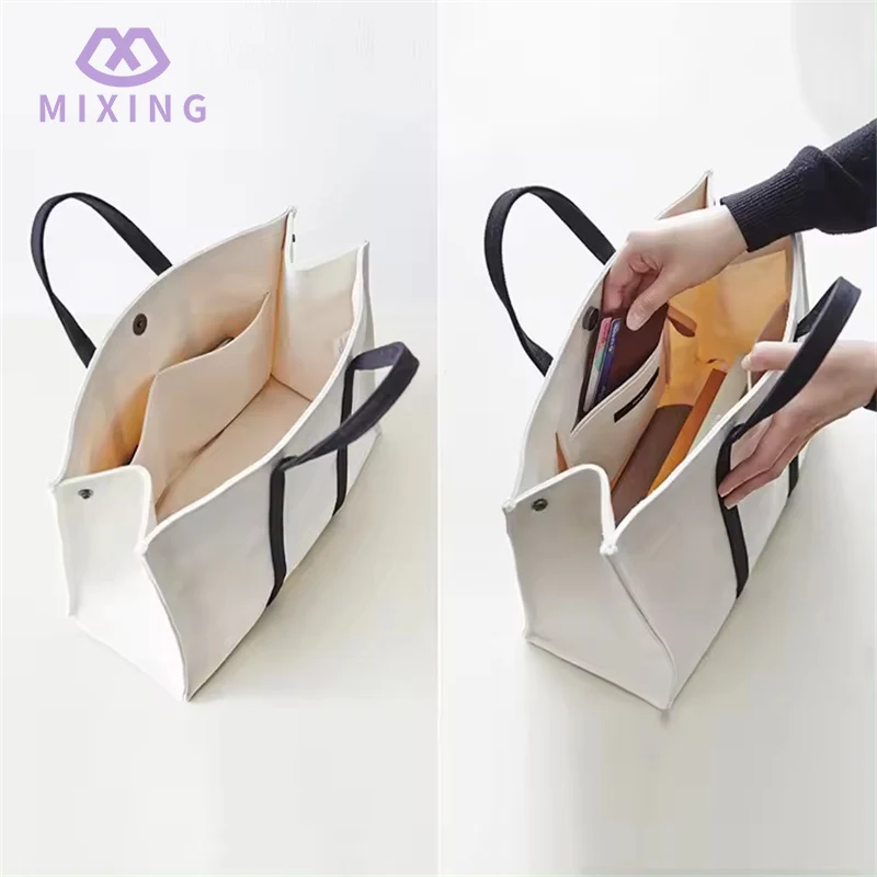 The Canvas material used in the Plain Canvas Tote Bag with Handles produced by Mixing supplier feels thick but not cumbersome. Unlike some thin canvas bags which are soft and limp, it can maintain a certain degree of stiffness after filling things, will not deform the items under pressure, and looks more regular.