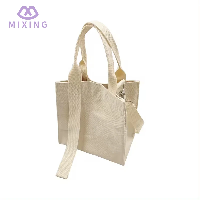 Mixing provides quality Plain Tote Bag with Strap. Whether it's carrying notebooks, folders and thermos cups for work on weekdays, mobile phones, tissues and cosmetics for shopping with friends on weekends, or a few small pieces of clothing for a short trip occasionally, the plain tote bag produced by Mixing can easily accommodate them. Unlike ordinary handbags that can only be carried by hand, when you get tired, you can just slits the shoulder strap over your shoulder to free your hands. It is a basic item that is not picky about the scene or the group of people.