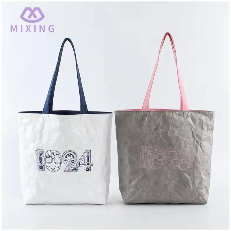 Our Tyvek Tote Bags are easy to clean and durable. If you accidentally drop milk tea on the bag, just wipe it with a wet tissue and it will be clean without leaving any marks, if you rub against the dust by the roadside, just pat or wipe it. There's no need to wash it with water like a canvas handbag. Occasionally scratched by small branches, it won't get any holes. It's much more durable than ordinary paper handbags and remains clean even after long-term use.